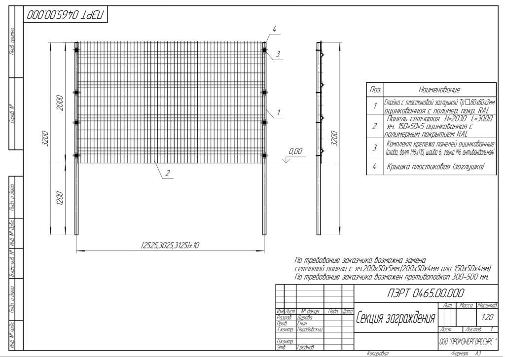 Сетчатое ограждение ПЭРТ 0465.00.000