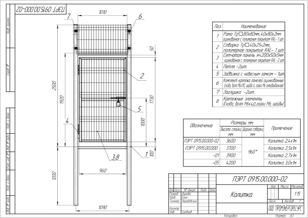Калитка ПЭРТ 0910-01.00.000