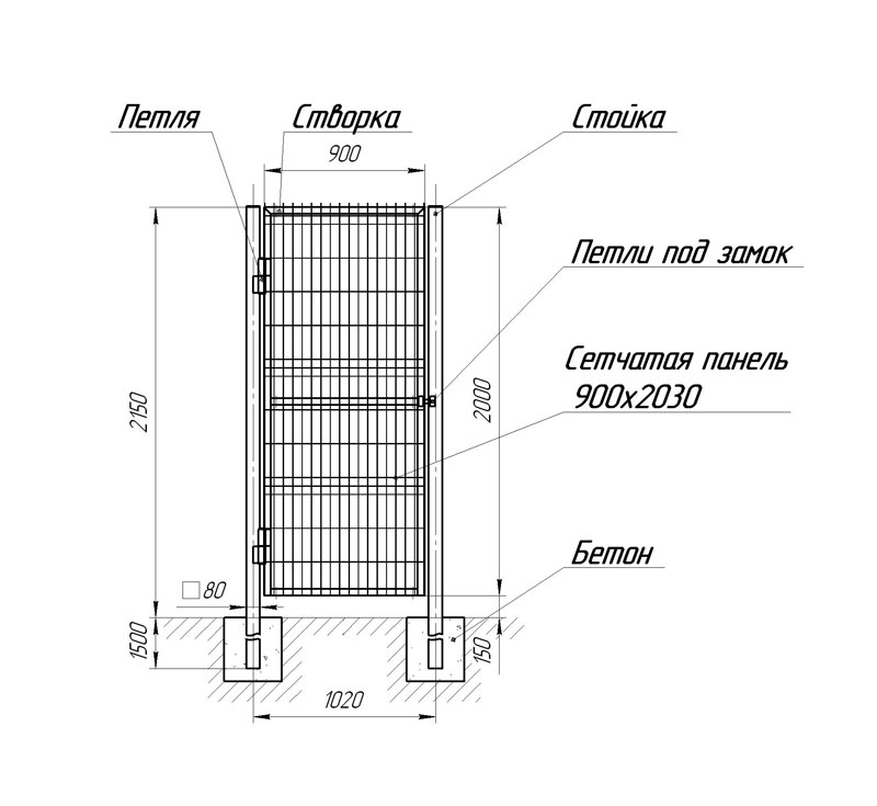 Ширина калитки – 0,9 м.